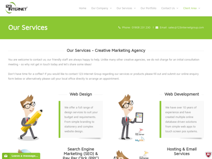 123 Internet Group are a full service creative marketing agency. With a head office in Milton Keynes and further locations in Northampton and London we support a national audience with web design and development, search engine marketing, social media management, hosting and email services.
