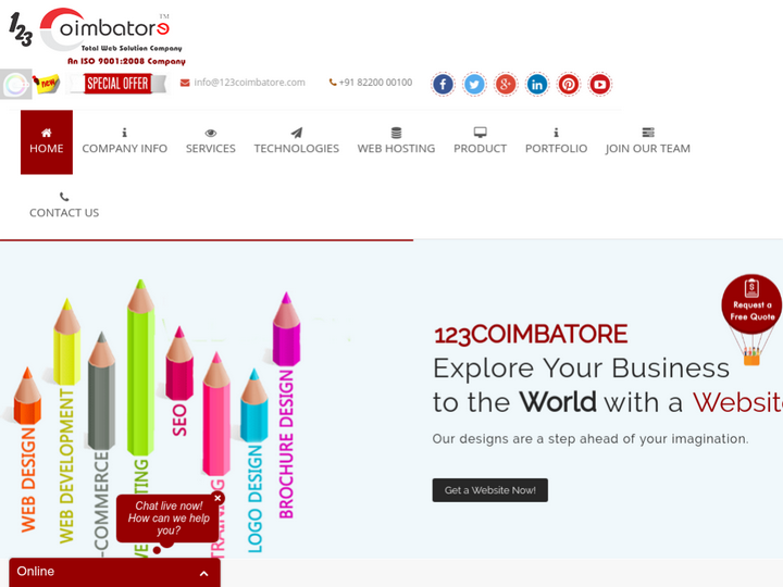 123coimbatore is an ISO 9001 : 2008 Certified Company and is recognized as one of the fastest growing and most experienced Web Designing and Web Development Companies in Coimbatore.