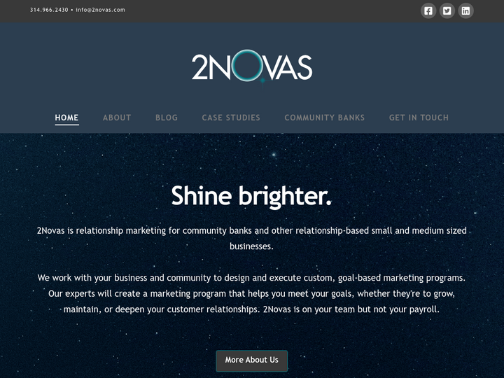 2Novas began as Home Advertising Inc., co-founded in 1993 by Joe Stephenson. Over the years, Joe built the business from an initial focus on radio advertising, to a full service traditional and digital agency, specializing in Community Banks.