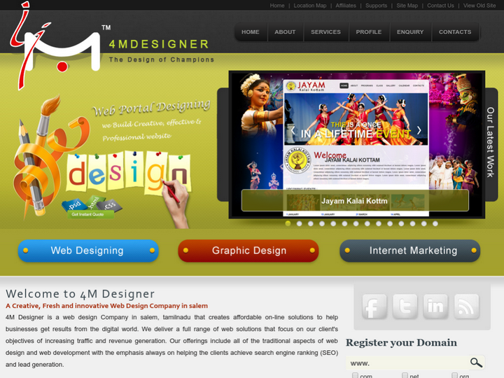 4M Designer is a web design Company in salem, tamilnadu that creates affordable on-line solutions to help businesses get results from the digital world. We deliver a full range of web solutions that focus on our client's objectives of increasing traffic and revenue generation.