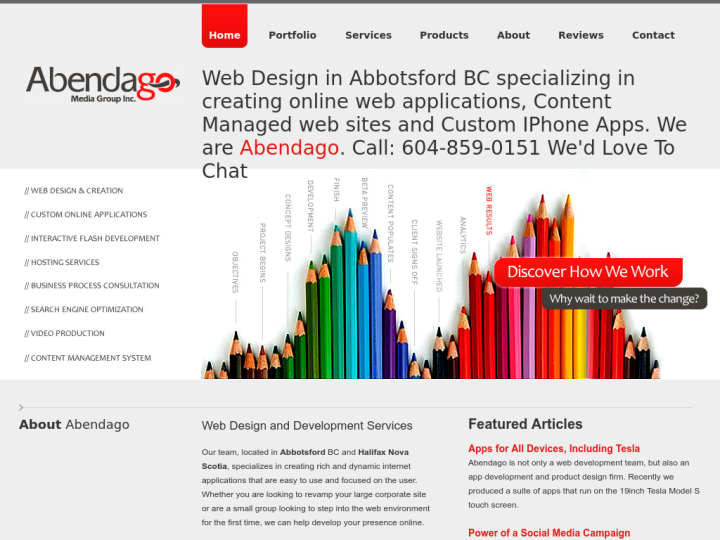 The company is a high-end web development and web design studio located in Abbotsford, BC which was founded in 1999 to provide custom web applications and content managed websites. Abendago Media Group is one of the professional business leading companies in British Columbia led by Nathan Leggatt, who is a Primary Project Manager and Lead Business Strategist.