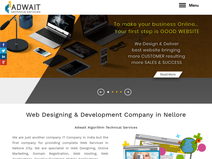 AA Tech, proud to share that we are the first IT Company in Nellore with sole motive to help businesses and establishments of any sizes in Nellore City to do business online and help them utilize optimum technology potential for their success and growth. Our complete portfolio of web and technology services offers business driven efficiency and real profitability to our clients.