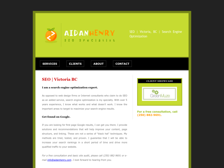 Aidan Henry is a full service SEO solutions based Consulting firm which is specialized in optimization strategies and solutions. With over 5 years experience, the company has become quite expert to know the important areas to maximize your search engine results. With the effective usage of SEO Site Audit, Keyword Research and Link Building; the firm makes your business succeed in the industry. Located in beautiful Victoria, BC, Canada; Aidan Henry is fully focused to achieve first page Google results every time for your business.