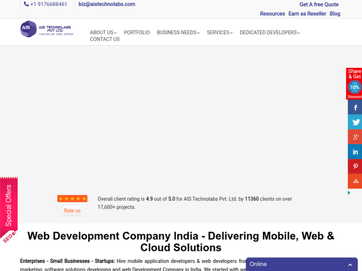 AIS Technolabs is a top website design and web development company with years of experience and expertise in designing and developing website, software application, mobile apps for iOS, Android & Windows, 2D-3D Games, SEO and digital marketing for small, medium, entrepreneur and individuals as well.