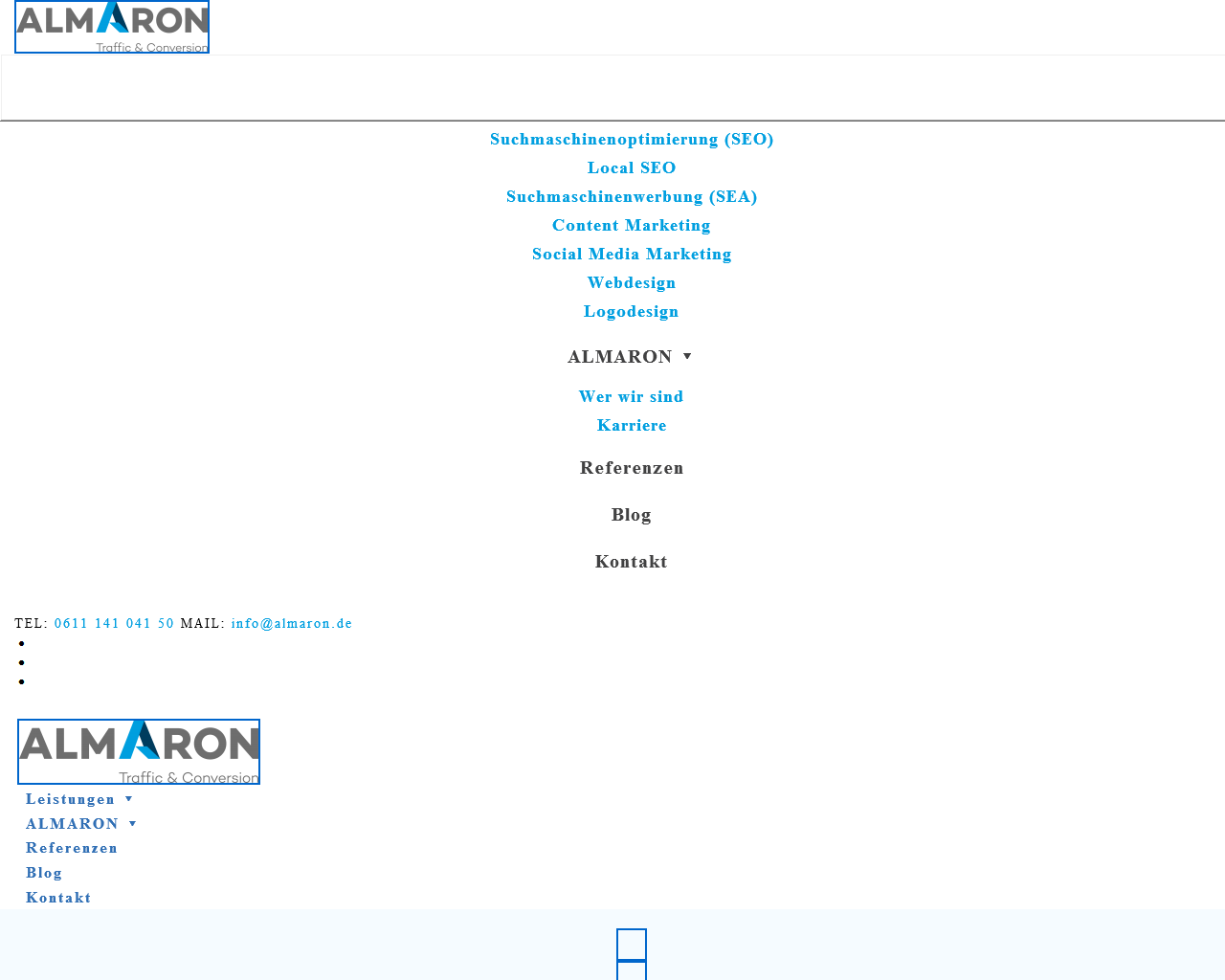 ALMARON is one of the most innovative online marketing agencies in Germany and is an official Google agency partner. We are the first point of contact when it comes to Google search engine optimization, new customer acquisition, web design and online marketing. With our many years of experience in the advertising industry, we have made it our task to generate new customers for small and medium-sized companies through measurable internet advertising.