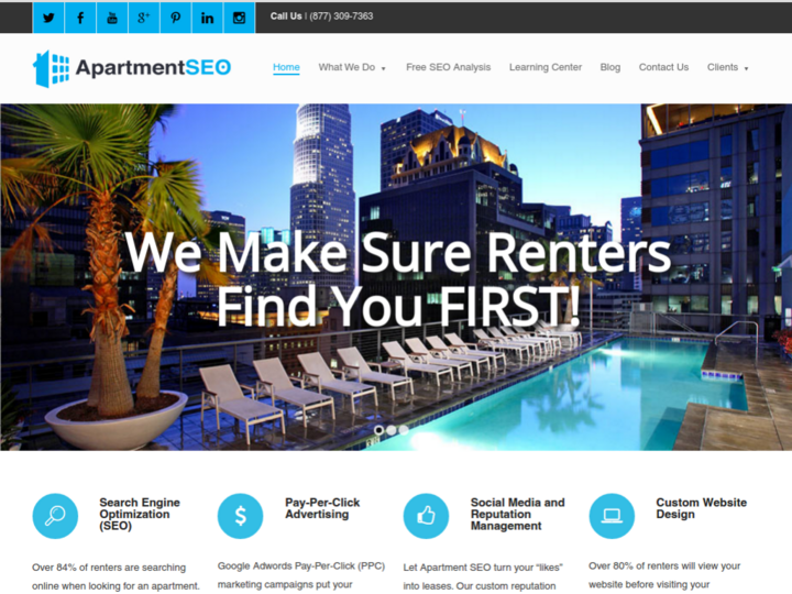 Apartment SEO is a full-service apartment internet marketing firm dedicated to serving the multifamily industry. We have combined decades of Multifamily industry knowledge and Internet Marketing expertise to provide property managers an all-in-one digital marketing solution with an understanding of their unique marketing goals and priorities.