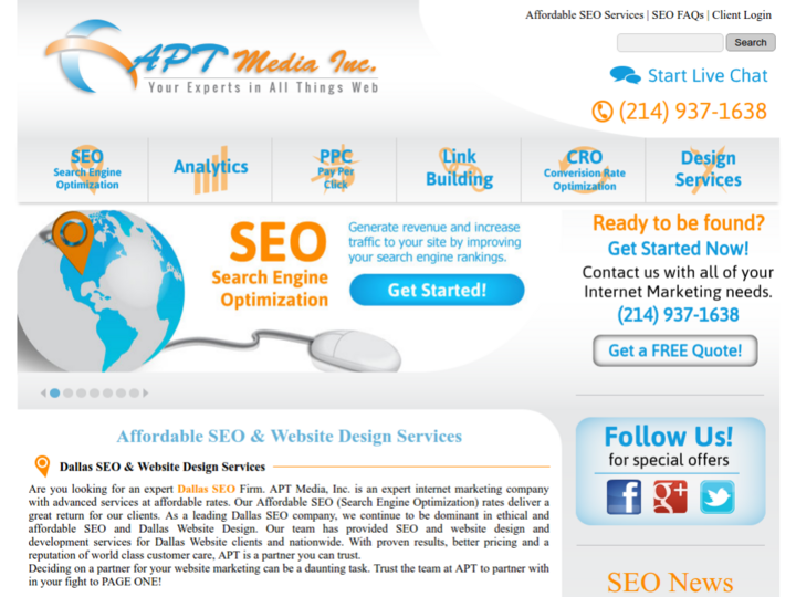 APT Media, Inc. is a team of experts for Dallas web Design, SEO and small business promotion. We are your Dallas SEO Services team and look forward to being part of your companies marketing arm.