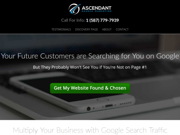 Does your local business need more customers in Calgary? Ascendant's Calgary SEO services will make your website #1 in the local Google search results for your critical revenue keywords. Call Ascendant today for safe and powerful Calgary Search Engine Optimization that puts Google traffic to work for you.