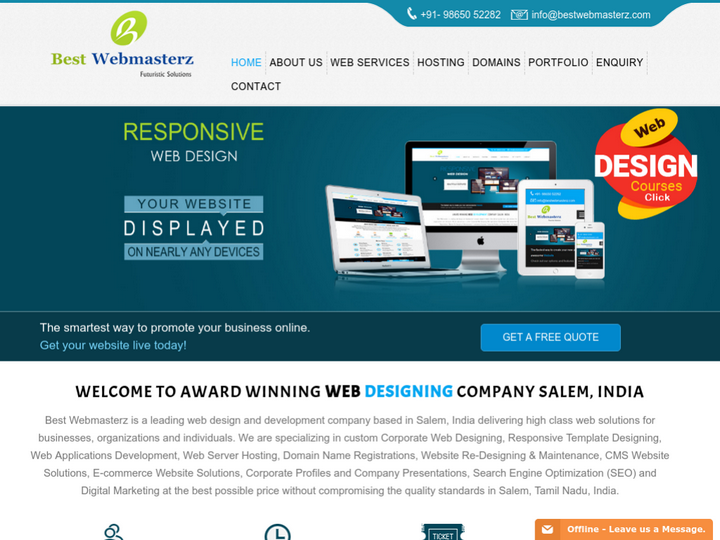 Best Webmasterz is a leading web design and development company based in Selam, India delivering high class web solutions for businesses, organizations and individuals.