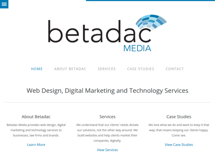Betadac Media provides web design, Internet marketing and technology services to businesses and brands. We have a lot of clients in the legal industry. We build clean, powerful, and purposeful websites, and help clients market their companies and brands through online channels: social media, email, search engine optimization (SEO), photography, content strategies and copywriting, etc.