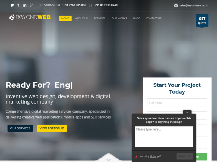 Beyondweb initiated as website design and development company in India (Bangalore), in 2007. With the spectacular growth of online businesses and mobile revolution, we expanded our services to provide full-fledged digital marketing solutions serving clients across the world.