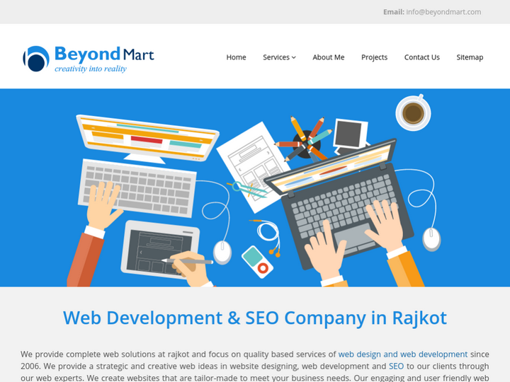 BeyondMart provides following web services to our clients. We things continue to accept new technology and provide it to you. My company beyondmart is Indian based company and located at Rajkot (Gujarat) India. My aim is to provide best solution. You will get all web services in one roof called beyondmart.com. Solutions we offer range from web hosting domain to developing business applications.