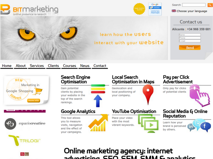 BITmarketing is an online marketing agency which is highly specialized in the services including search engine optimization (SEO), social media marketing (SEM), natural positioning, online reputation management, analytics and tactical advertising on Google. As a result, you get maximum visibility on internet as well as better online communication with your customers.