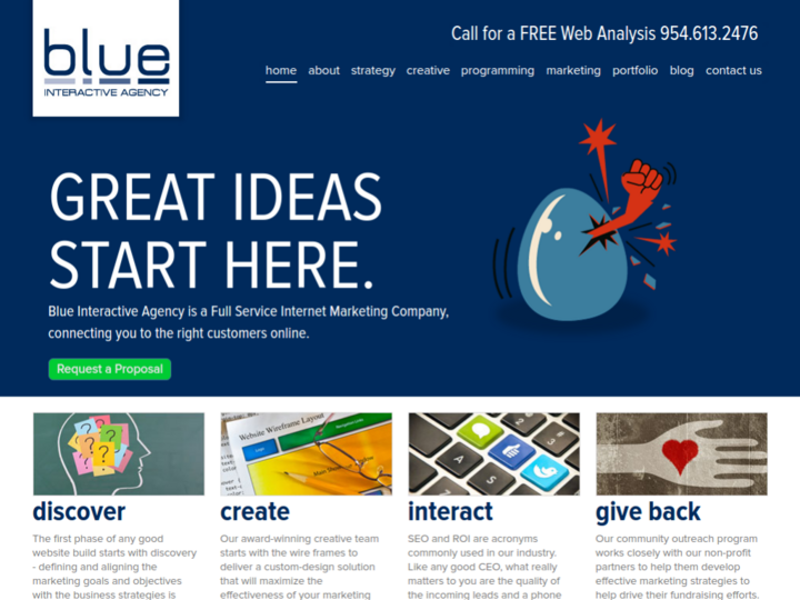Blue Interactive Agency empowers clients by providing the tools necessary to succeed in today's Internet market. Blue Interactive Agency provides website design based on SEO-friendly code for high visibility and effective Internet marketing campaigns. Our goal is to provide a complete Internet marketing solution at a competitive rate. As an innovative, forward-thinking company, we aim to be our client's strategic online partner. Based in Fort Lauderdale, FL, we serve clients both nationally and internationally as well as in the tri-county area (Miami, West Palm Beach and Fort Lauderdale).