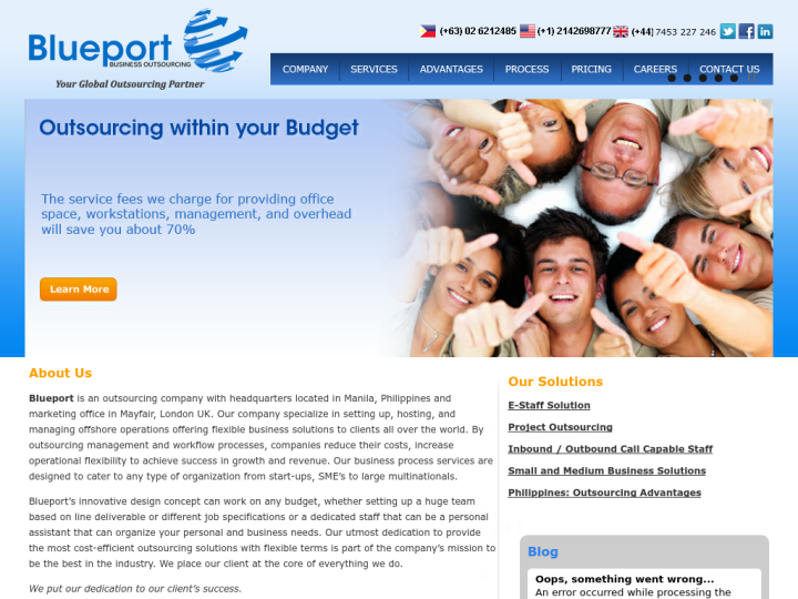 Blueport is Manila based outsourcing company. The company has its marketing office in London UK. It specializes in setting up, managing off shores and hosting operations that offer flexible business solutions. By its workflow processes, the company increases its operational flexibility and reduce cost. The company serves for many clients ranging from startups and SMEs to large multinationals. The business process services offered by the company help many businesses in expanding their reach.