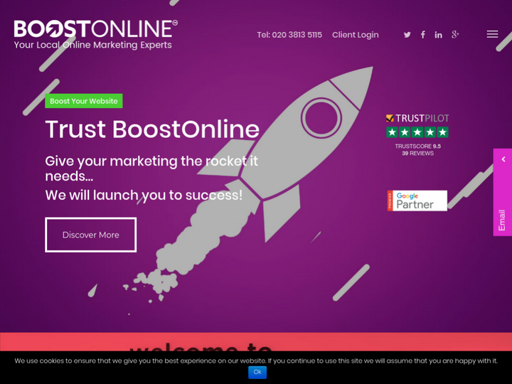 BoostOnline is a leading digital marketing agency providing online marketing services for your business. BoostOnline has many years of digital marketing experience. The team is focused on providing specialist, bespoke services to businesses throughout Surrey, Sussex, Kent, Essex and London.