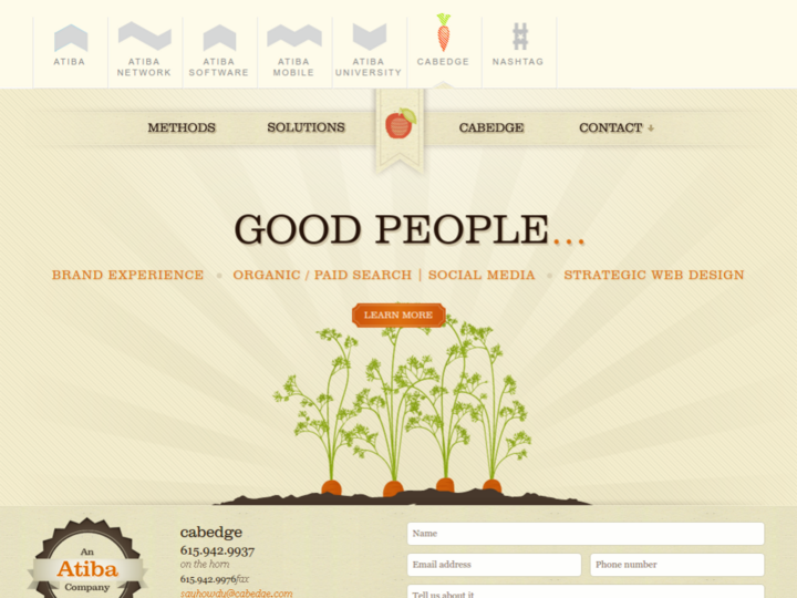 Cabedge Design LLC is made up of great designers, internet marketers, project managers, UX specialists and brand strategists who like trapeze artists work together seamlessly to do great websites for clients all over Nashville and the US. We (Atiba) bought Cabedge 2 years ago after using them on many Atiba projects over the years. Very proud of the Cabedge crew, how genuine and practical they helping businesses of all sizes get the most out of their websites!