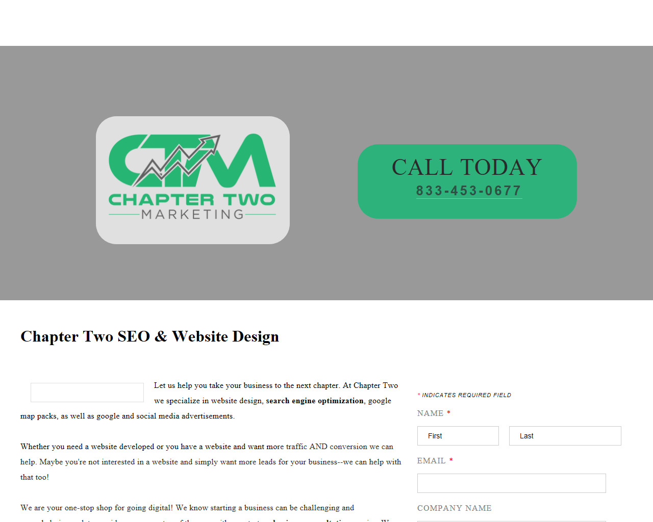 Let us help you take your business to the next chapter. At Chapter Two we specialize in website design, search engine optimization, google map packs, as well as google and social media advertisements.