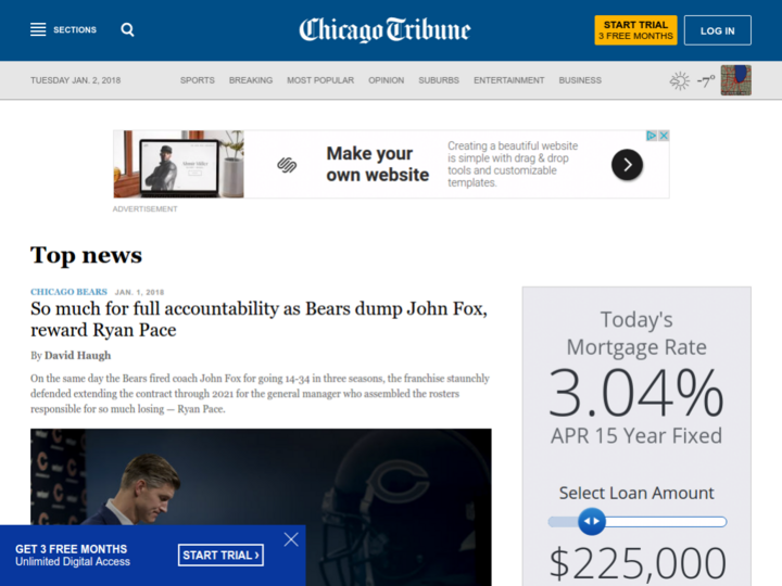 We've made some changes to the navigation. To go to any section, first click or tap on the (three horizontal lines, known as a hamburger icon) icon at the upper-left corner of your screen. For complete details about how to navigate the site, please see Chicagotribune.com's new navigation guide.