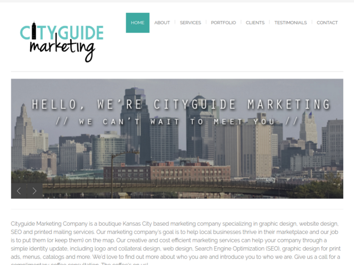Cityguide Marketing Company was created by Aimee Jacobson when clients from its sister advertising company hercityguide.com began requesting help with more of their marketing endeavors. Requests for web design, graphic design and consultation time with Aimee always ended in "We can manage that for you".