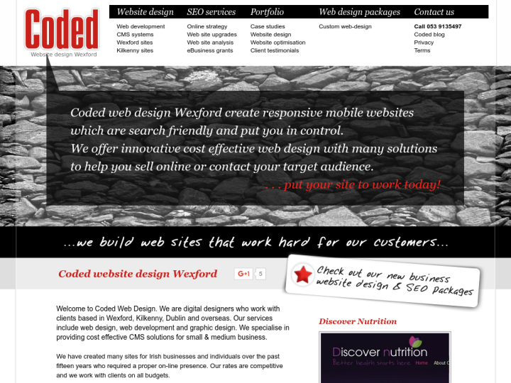 Coded Web Design is a Wexford, Kilkenny based creative, responsive website development company which provides you cost effective solutions in the industry. We are digital designers who work with clients based in Wexford, Kilkenny, Dublin and overseas. We help our clients sell their online brands, products and services with ease and specialized tactics.