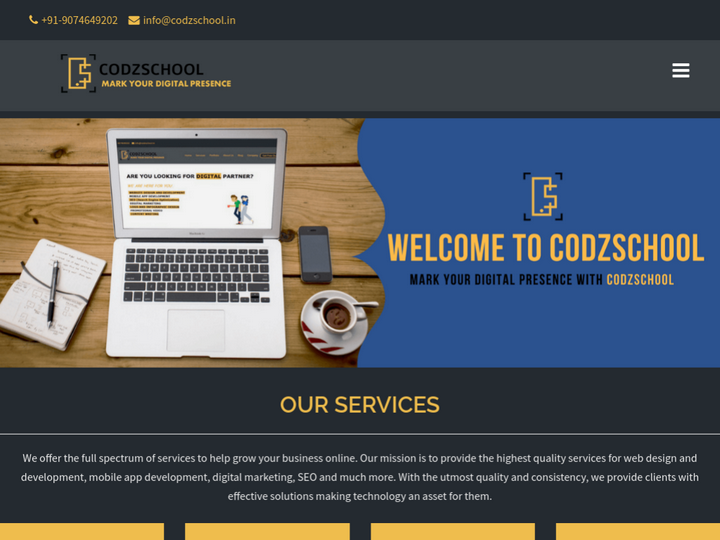 Codzschool- "Mark Your Digital Presence" is a Web Design and Development company in India. Since its establishment in 2015, the Designers and Developers at Codzschool have passionately created many engaging and profitable websites, designs and mobile apps for large and small businesses around the world.