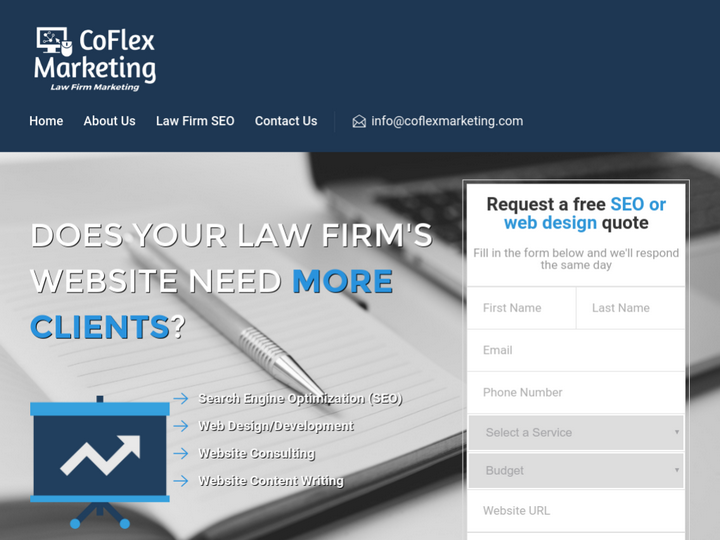 CoFlex Marketing provides search engine optimization (SEO) to law firms with monthly budgets from $1,000 to $20,000. They help produce results that bring in new clients for many law firms in different practices of law across the United States.