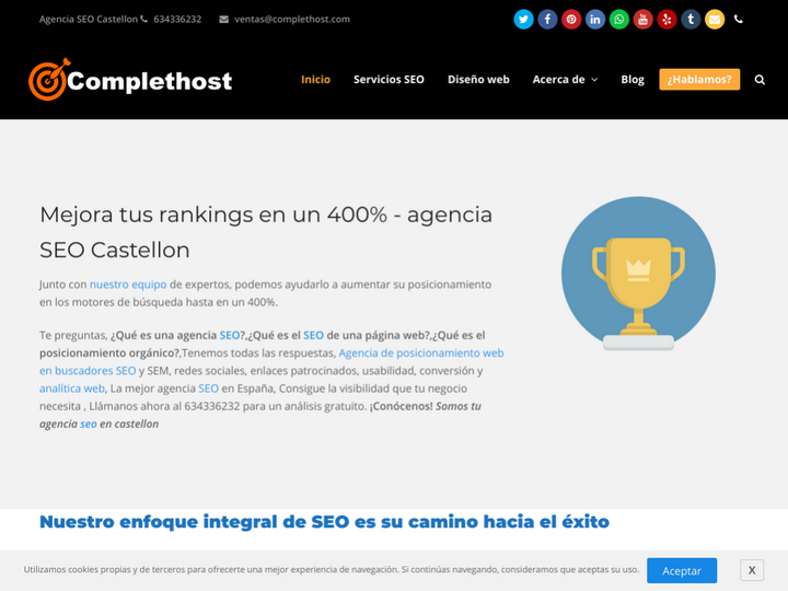 Complethost is a local internet search engine optimization company ,located at Castellon, Spain, that works with local businesses to place them at the top of relevant local search results. We are so confident with our service that we offer an industry leading gurantee on services rendered.