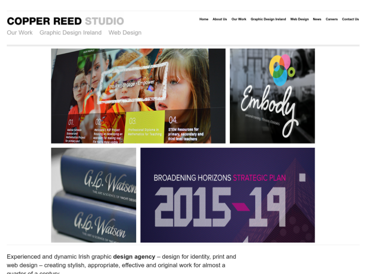 Copper Reed Studio is one of Ireland’s leading multi disciplined website and graphic design companies which was founded in 1993 in Ireland with the mission of providing a rare blend of creative talent, design experience and commercial and marketing awareness, coupled with excellent project and cost management.