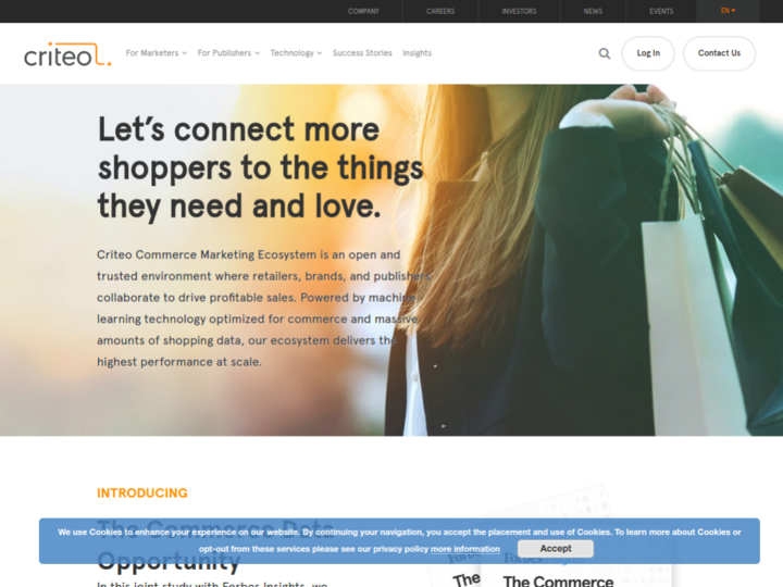 Founded by a small group of great minds at a start-up incubator in Paris, Criteo has become a global leader in commerce marketing. Driving this growth: machine-learning technology, data and performance at scale, and measurable ROI for our clients, as well as the ingenuity and spirit of more than 2,700 employees worldwide.