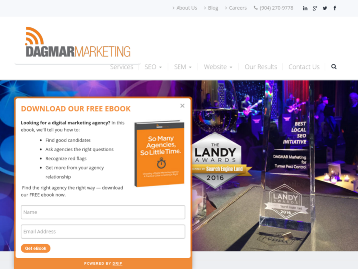 I started my relationship with the Dagmar last November when I was tasked to revamp a large companies marketing plan. I was really interested in taking our online presence to the next level and I couldn't be happier that I chose Dagmar. They handle our SEO, Google AdWords management as well a lot of copy for various projects. Everyone is an expert in their specific field and have great ideas and attention to detail. They are very responsive and answer my calls all the time, which can be often! Their reporting is excellent with a lot of great data. Our SEO position is up significantly as is our AdWords position and our leads are up over 200% from last year! I would recommend Dagmar to any business owner that is serious about increasing their online presence and sales!