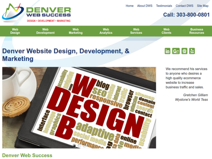 Denver web success is a web designing company that specializes in web design, development and marketing. The company provide services that best matches with your corporate branding. It assists in developing the online presence of your business. Additionally, the company provides search engine optimization, search engine marketing, pay per click marketing and local optimization services.