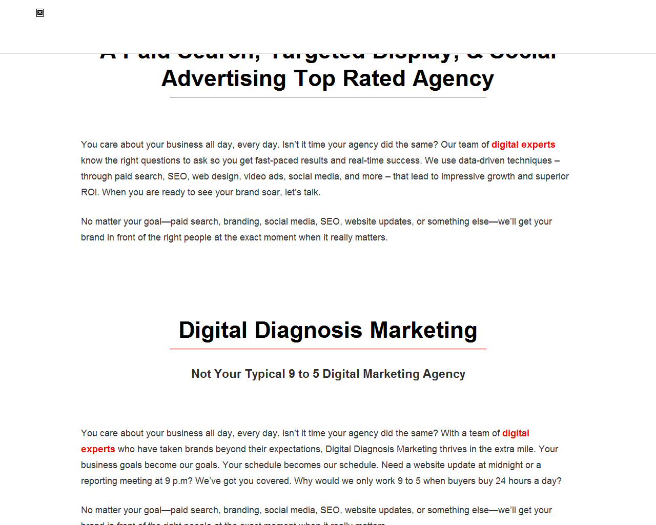 You care about your business all day, every day. Isn’t it time your agency did the same? With a team of digital experts who have taken brands beyond their expectations, Digital Diagnosis Marketing thrives in the extra mile. Your business goals become our goals. Your schedule becomes our schedule. Need a website update at midnight or a reporting meeting at 9 p.m? We’ve got you covered. Why would we only work 9 to 5 when buyers buy 24 hours a day?
