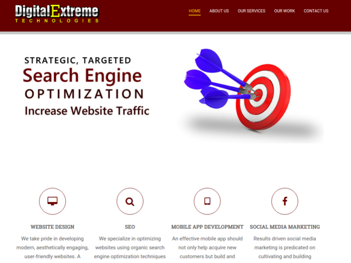 Digital Extreme Technologies, LLC is an established, full-service web design company. We offer comprehensive website services for various types of businesses. Our services include website design/re-design, search engine optimization, social media marketing, mobile app design, digital marketing, website hosting and much more. We offer a variety of web site packages to fit any budget.