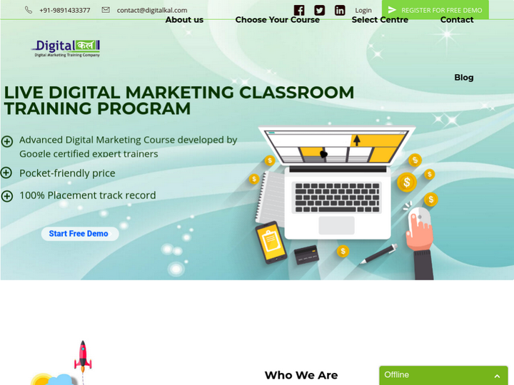 DigitalKal is a Digital marketing training Company & consultancy. Its headquartered in Delhi-NCR and also a presence in UP, Rajasthan, Haryana and growing other states.We Offer E-commerce & Digital marketing Course and training to students, Professional, Entrepreneurs, Corporate & Freelancers.Our aim is to help everyone in Learning and make capable to implement on Digital Platforms.