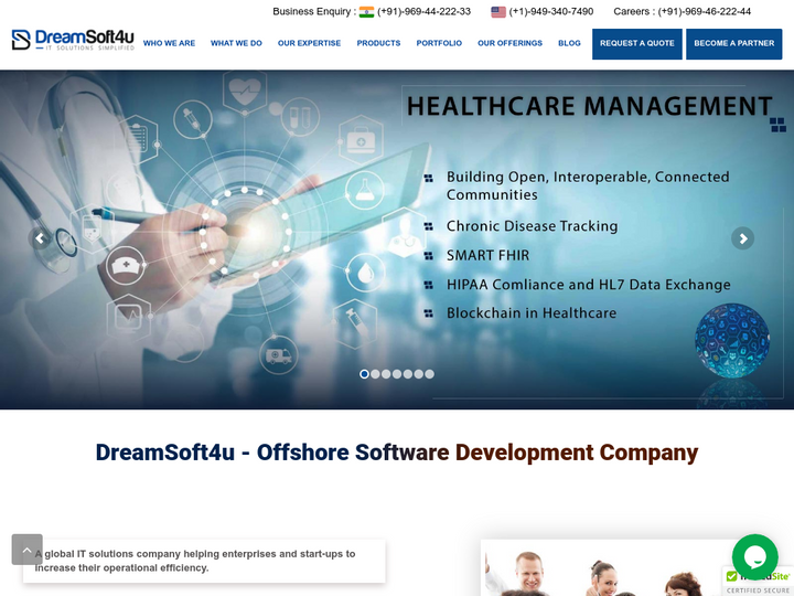 DreamSoft4u is a leading IT solutions provider specializing in healthcare software development, telemedicine solutions, custom web and mobile app development, and cutting-edge technologies like Generative AI and AI Chatbots. With over a decade of experience, we deliver innovative, scalable, and secure solutions tailored to our clients' unique business needs. Our commitment to excellence and customer-centric approach has helped us build a global clientele across the UAE, Australia, Canada, and the US—partner with DreamSoft4u to transform your digital vision into reality.