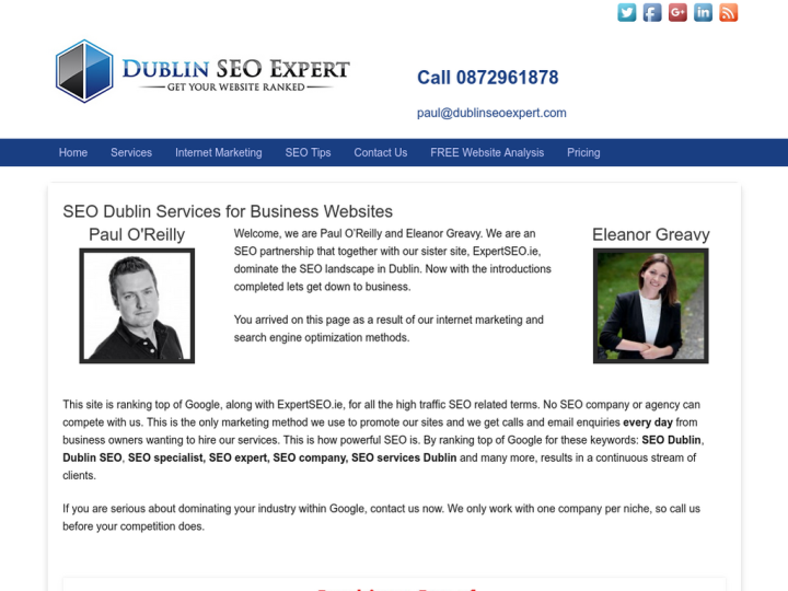 Dublin SEO Expert is an internet marketing and search engine optimization solution provider which is fully dedicated to create and maximize your business website at affordable rate. The company was initiated by Paul O’Reilly, who helps you gain all of the leads you are losing to your competitors that are ranked higher than you in Google. With minimum keywords and maximum ROI, Paul assures you to get a successful path in the industry.