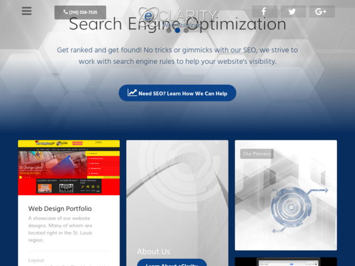 eClarity Web Solutions has just celebrated being in business eight years and has worked with a variety of businesses in the Greater St. Louis area and businesses nationwide. eClarity Web Solutions believes that when you own a business whether it be a startup or a seasoned business that everything of your business is yours, including your business’ website. Fill out the form below or call one of our courteous customer service representatives today. We will be happy to answer any of your questions and/or schedule a meeting today.