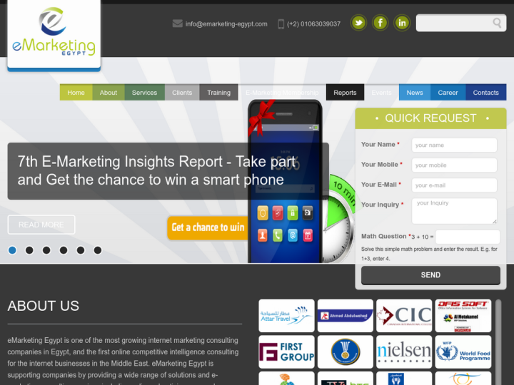 E Marketing Egypt Inc is an internet marketing company which is the first company in MENA that provides integrated e-marketing services with promised results. The company is fully dedicated to support its clients with full integrated internet marketing strategies and internet related investment decisions.