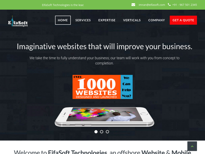 Eifasoft Technologies - Web Design Development has an A++ team players. They recently finalized our new website. It was an absolute liking working with them. Professional, experts, reliable, responsive, and brainy would be five words we would use to some them up. Their players jumped right in guiding us through the sometimes daunting process of developing a new website or developed an any kind of new software. We look forward to ongoing our working relationship with them! To anyone looking for a web designer or software developer or internet marketing we would highly recommend for Eifasoft Technologies!