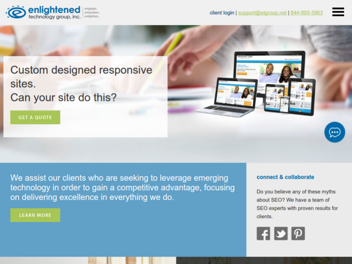 Enlightened Technology has been actively creating and extending brands into the digital space since 1998. Our success can be measured by a steady increase in referrals from our clients. We want you to brag about what we have done for you. Our development hinges 100% on what return is possible from the effort. We are certainly proud that our existence to date has been a pure and consistent referral base from our clients.