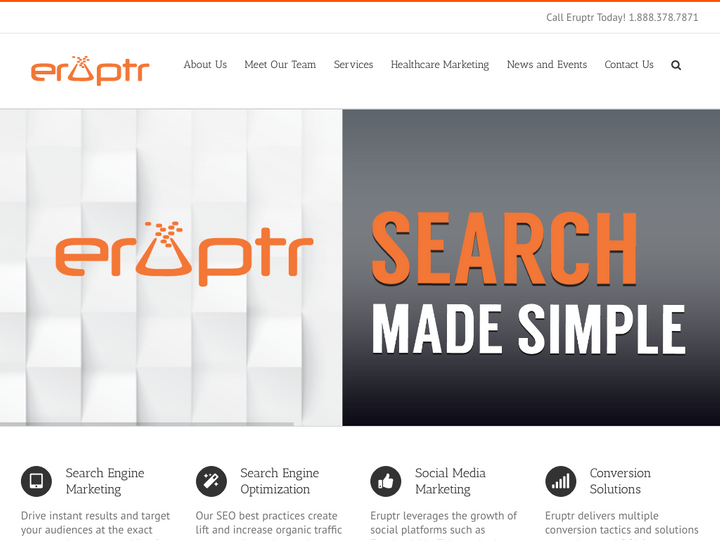 Eruptr was created specifically to tackle the challenges that organizations face. We are leading experts in Search Engine Marketing (SEM), Search Engine Optimization (SEO), Banner Advertising, Remarketing, Social Media Marketing and importantly, conversion solutions that yield measurable results. Eruptr’s innovative programs will increase brand awareness, visitors and consumer throughput.