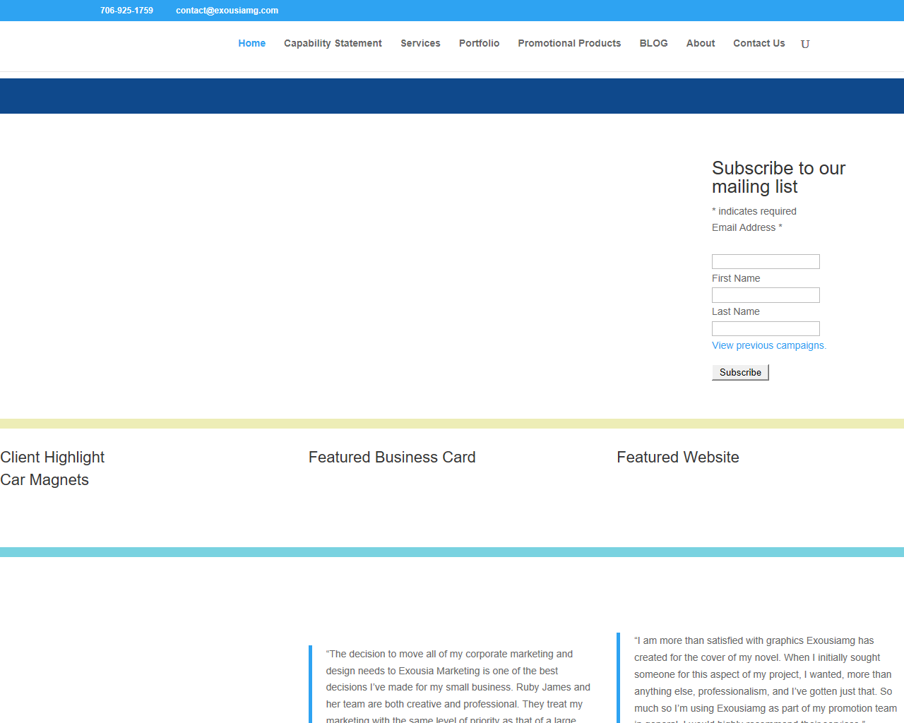 Exousia Marketing Group, provides print and digital marketing services from website design to your business cards. Augusta's Choice for a one-stop shop for marketing! Exousia Marketing Group is happily serving businesses in Augusta, North Augusta and other cities throughout the CSRA, while maintaining healthy relationships across the globe. It all began in April, 2004 in Europe by visionaries and founders, Ruby and Nicolas James.