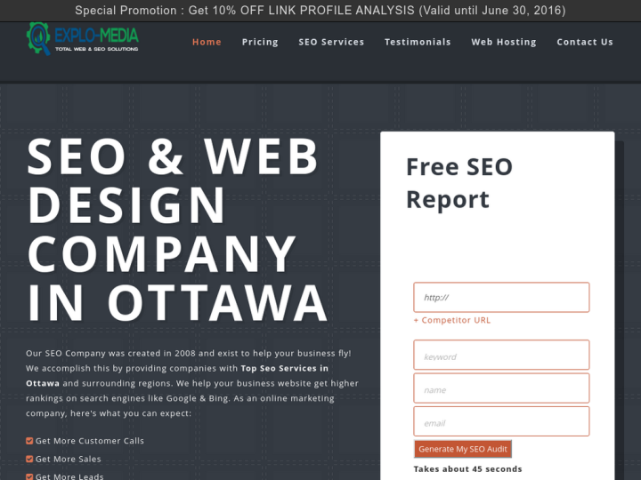 Explo-Media is a Canadian SEO & Digital Marketing company in Ottawa that helps businesses get the online visibility their company deserves. We offer affordable SEO services while giving you top results. Get more leads, more traffic, more calls and more customers with Explo-Media!