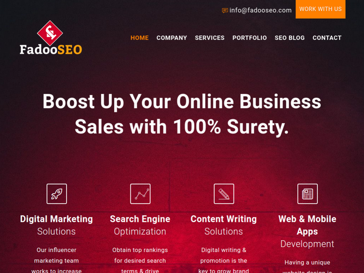 FadooSEO being in the service business since 2011 in the filed of digital internet marketing and SEO services. We have implemented digital marketing strategy on more than 950+ websites, we handle SEO on all kinds of web applications for small, medium and large enterprises.