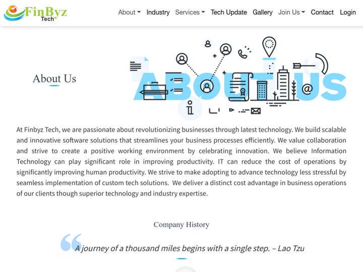 At Finbyz Tech, we are passionate about revolutionizing businesses through latest technology. We build scalable and innovative software solutions that streamlines your business processes efficiently. We value collaboration and strive to create a positive working environment by celebrating innovation. We believe Information Technology can play significant role in improving productivity. IT can reduce the cost of operations by significantly improving human productivity. We strive to make adopting to advance technology less stressful by seamless implementation of custom tech solutions. We deliver a distinct cost advantage in business operations of our clients though superior technology and industry expertise.