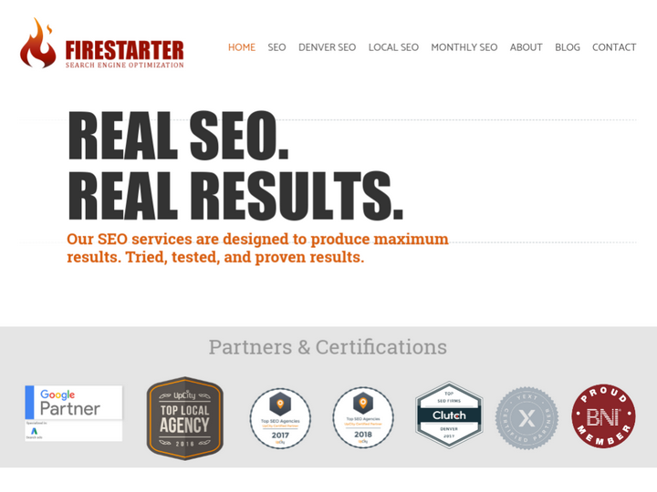 Firestarter Search Engine Optimization is a SEO company located in Denver, Colorado. Firestarter is comprised of the best search engine marketing team available. At Firestarter SEO we believe in being accountable for our work. We run weekly reports and rankings as well as provide a monthly report showing measurable results and improvements.