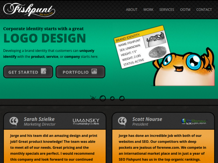 Fishpunt Design Studio was founded in 2009 as an agile firm devoted to delivering expertise, quality, and results. We were established to help clients kick tail. If you're fishing for clients, we are the boat. Our studio provides a one-call solution for businesses to quickly yet effectively generate sales and find new leads while maintaining a consistent message.