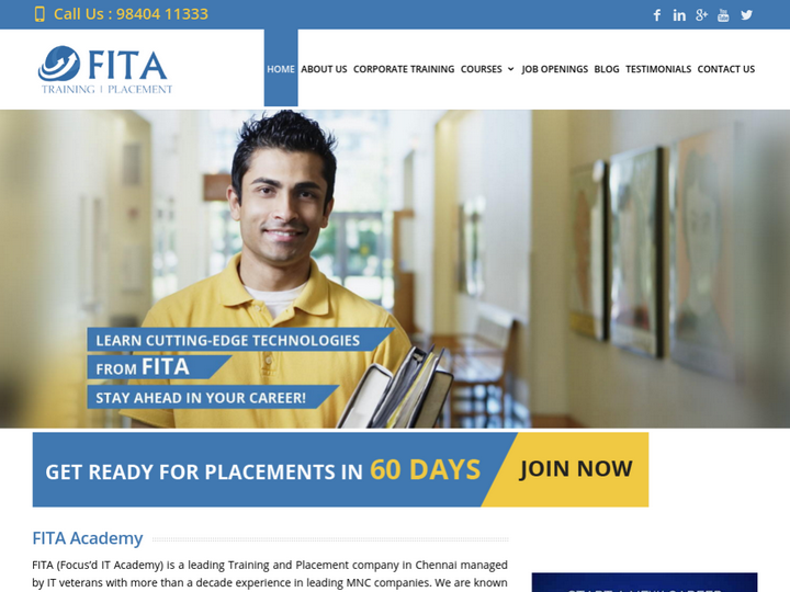 FITA (Focus’d IT Academy) is a leading IT and Language training center providing full-suite of training and placement services for freshers seeking a new career and professionals looking for career advancement. FITA is mastered and administrated by highly skilled industry experts with more than 15 years of IT experience.