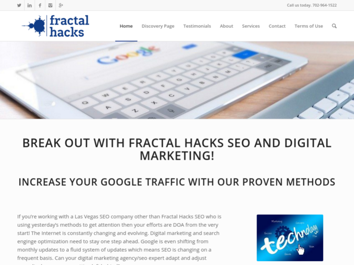 Fractal Hacks is Las Vegas's SEO Superstar. If you’re working with an online marketing agency in Las Vegas, Nevada using yesterday’s methods to get attention today, then your efforts are DOA from the very start! The Internet is constantly changing and evolving so digital marketing and Search Engine Optimization need to stay one step ahead. What matters at the end of the day? Results. No matter how great an SEO campaign sounds, no matter how much work goes into a digital marketing campaign, if your agency doesn’t get you results, they failed. Contact Fractal Hacks today and let’s get your online marketing not only back on track but on top of your field!